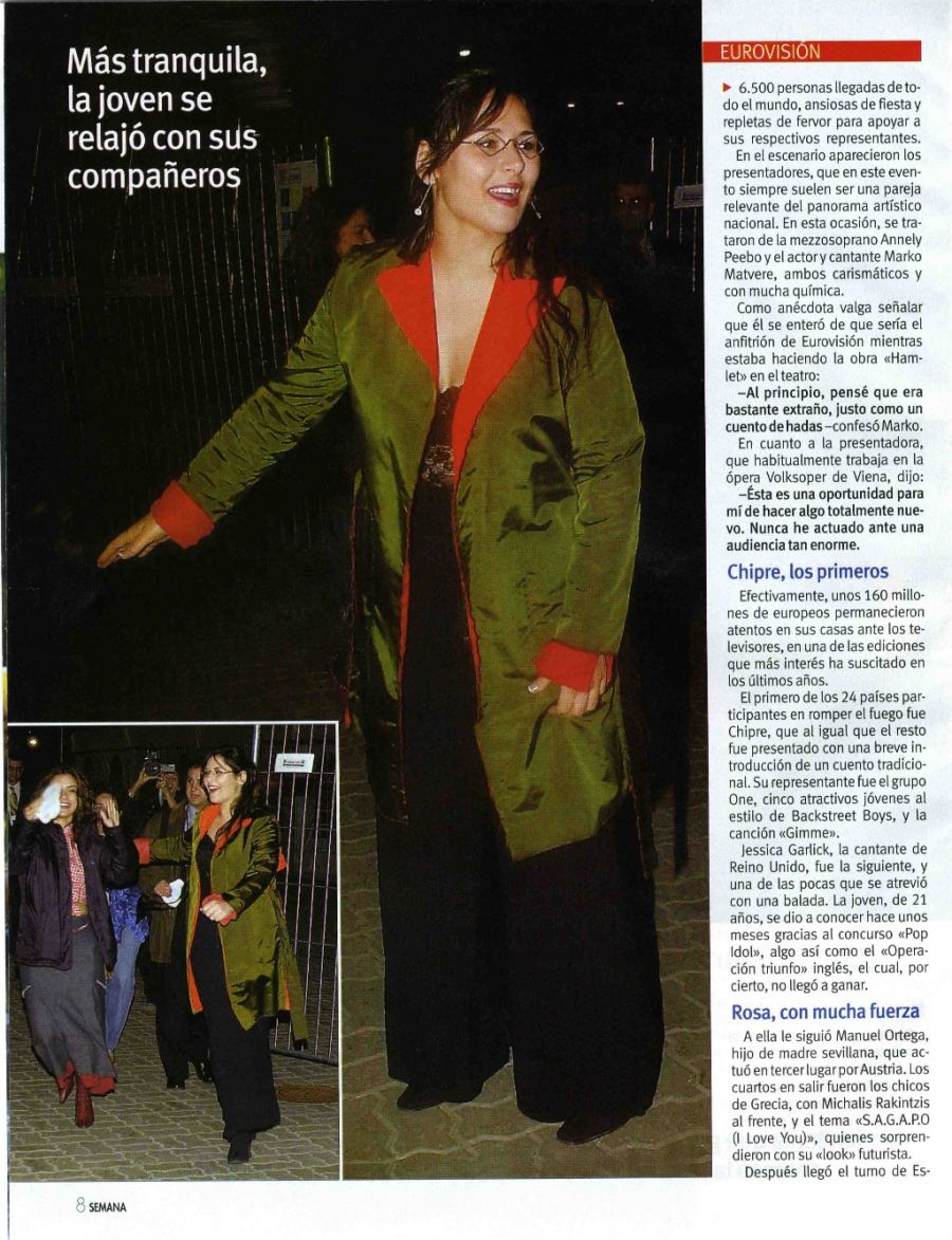 Rosa: "Mi premio es haber pisado el escenario de Eurovisión"Semana05/06/2002Escaneada por Rosamania