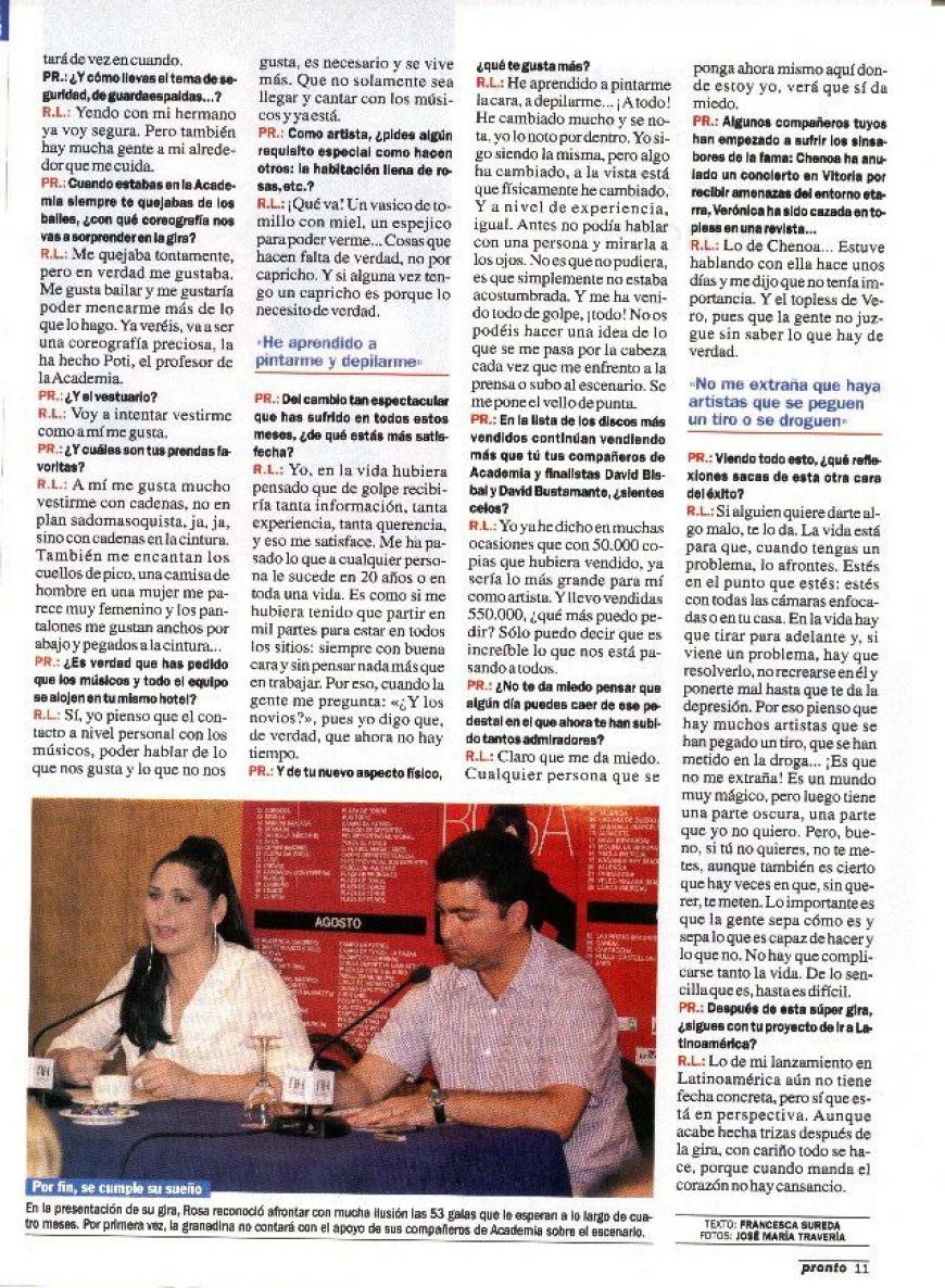 Rosa se destapa y nos habla de sus sentimientosPronto20/07/2002Escaneada por Desconocido