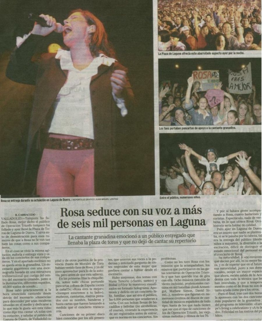 Rosa seduce con su voz a más de seis mil personas en LagunaEl Mundo-Valladolid05/09/2002Escaneada por Desconocido