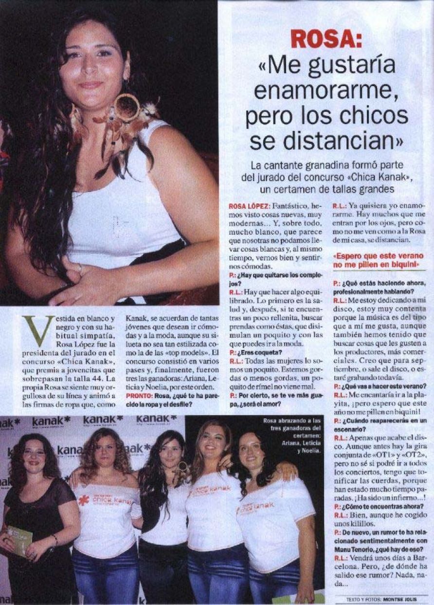 Rosa: "Me gustaría enamorarme, pero los chicos se distancian"Pronto21/06/2003Escaneada por Rosamania