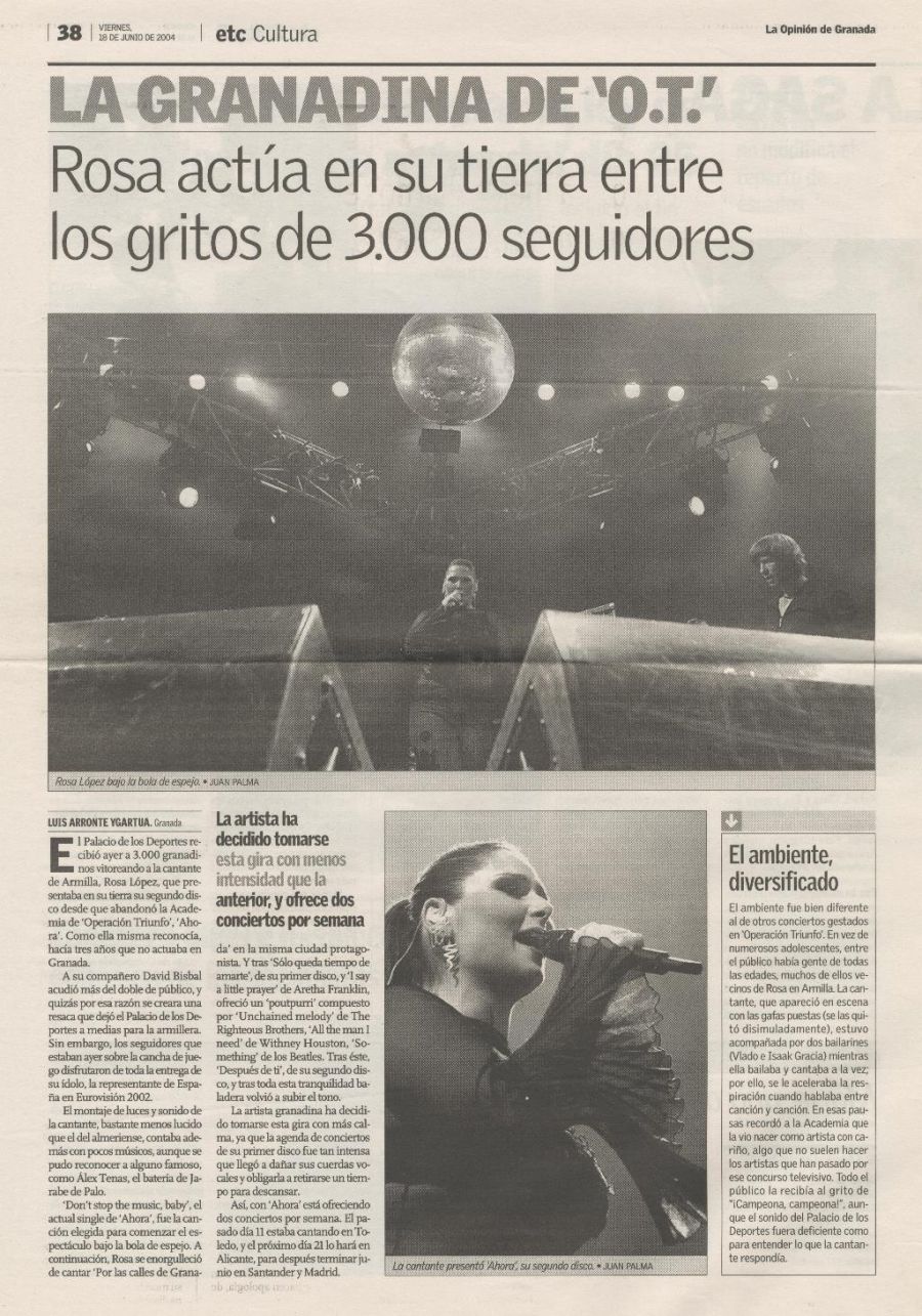 Rosa actúa en su tierra entre los gritos de 3.000 seguidoresLa Opinión de Granada18/06/2004Escaneada por Rosamania