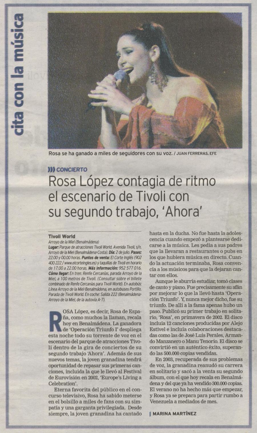 Rosa López contagia de ritmo el escenario de TívoliSur02/07/2004Escaneada por Rosamania
