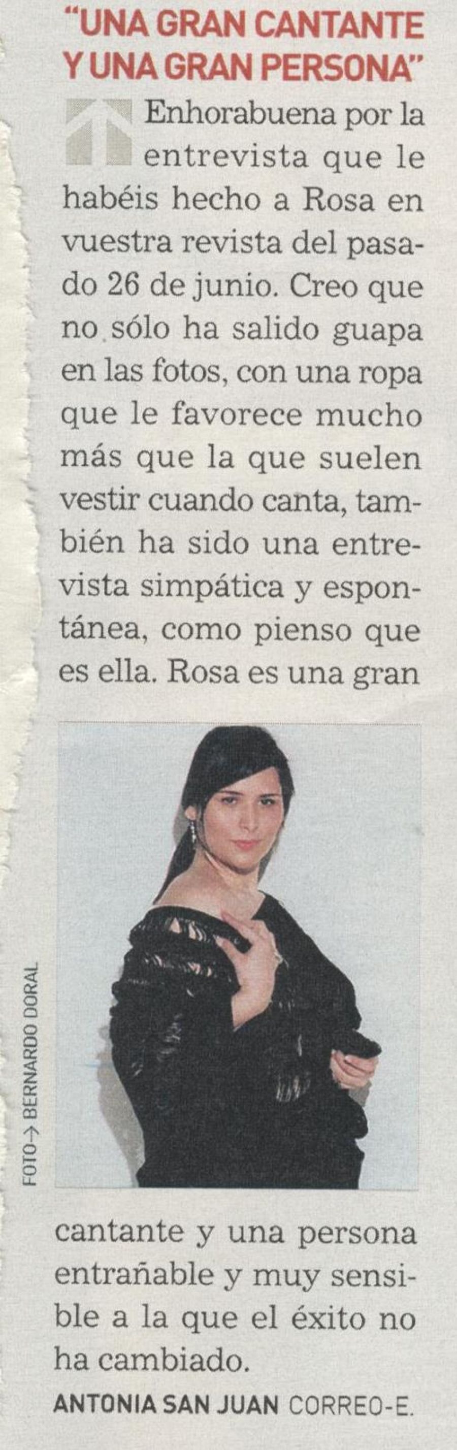 "Una gran cantante y una gran persona"Mujer Hoy10/07/2004Escaneada por Rosamania