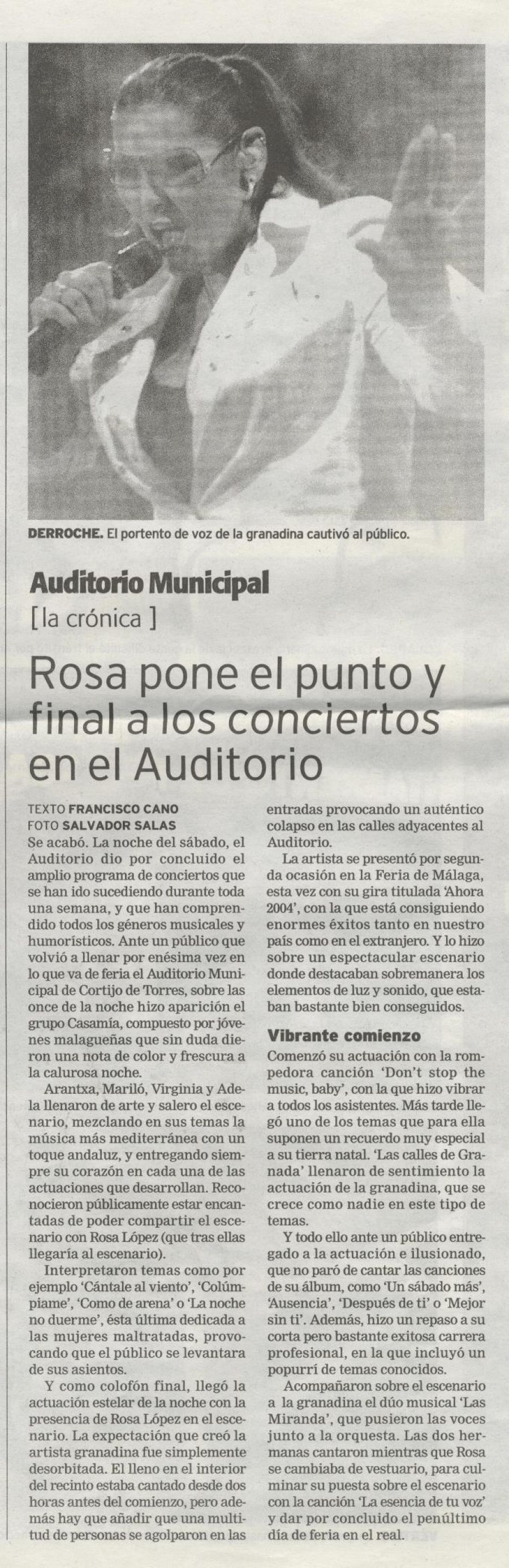 Rosa pone el punto y final a los conciertos en el AuditorioSur23/08/2004Escaneada por Rosamania