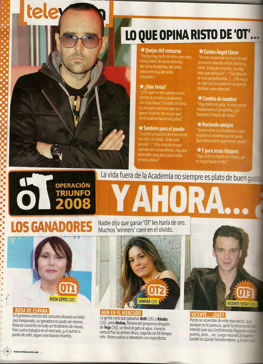 Lo que opina Risto de "OT"Cuore23/07/2008Escaneada por Rosamania