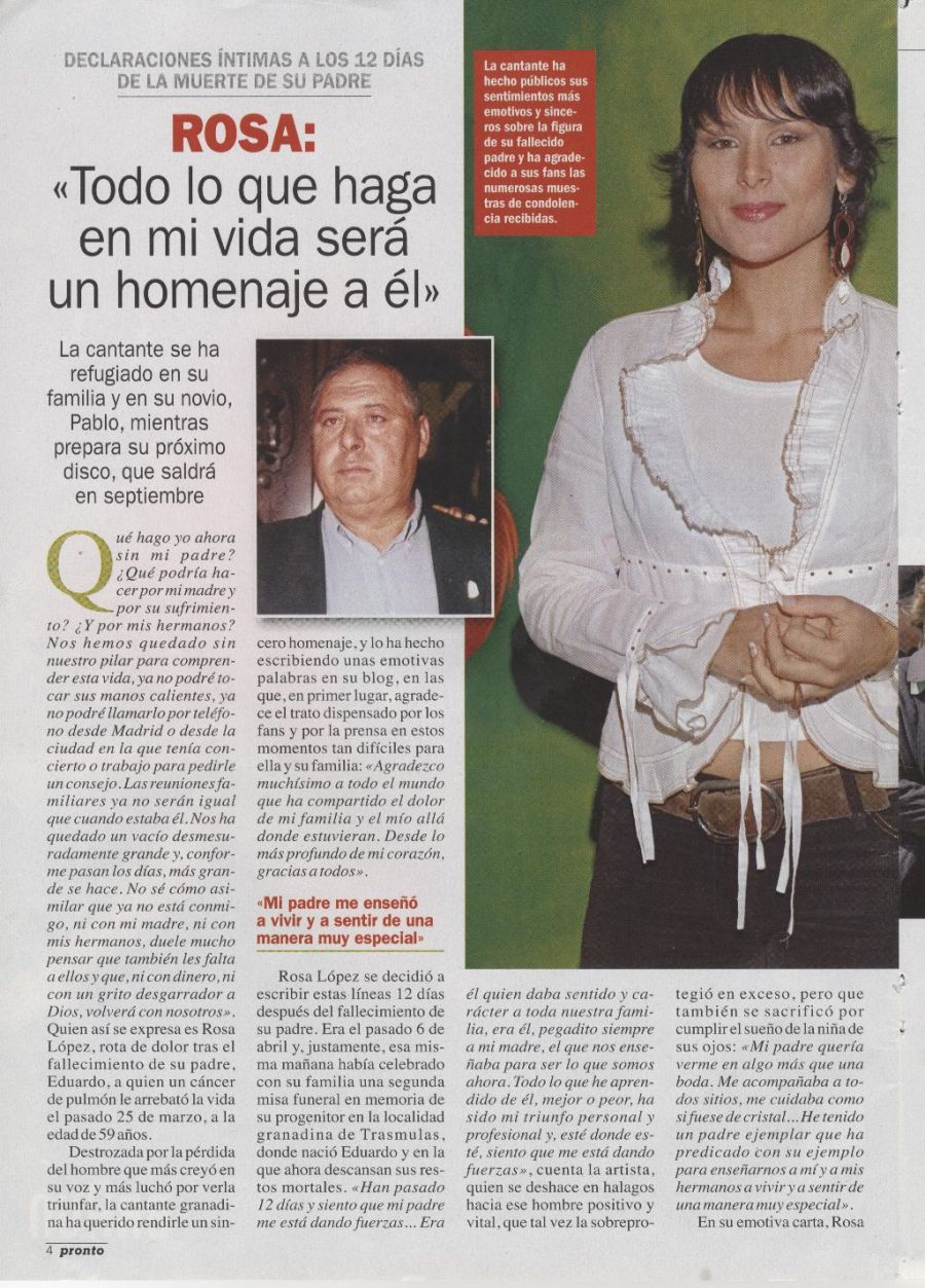 Rosa: "Todo lo que haga en mi vida será un homenaje a él"Pronto19/04/2008Escaneada por Rosamania